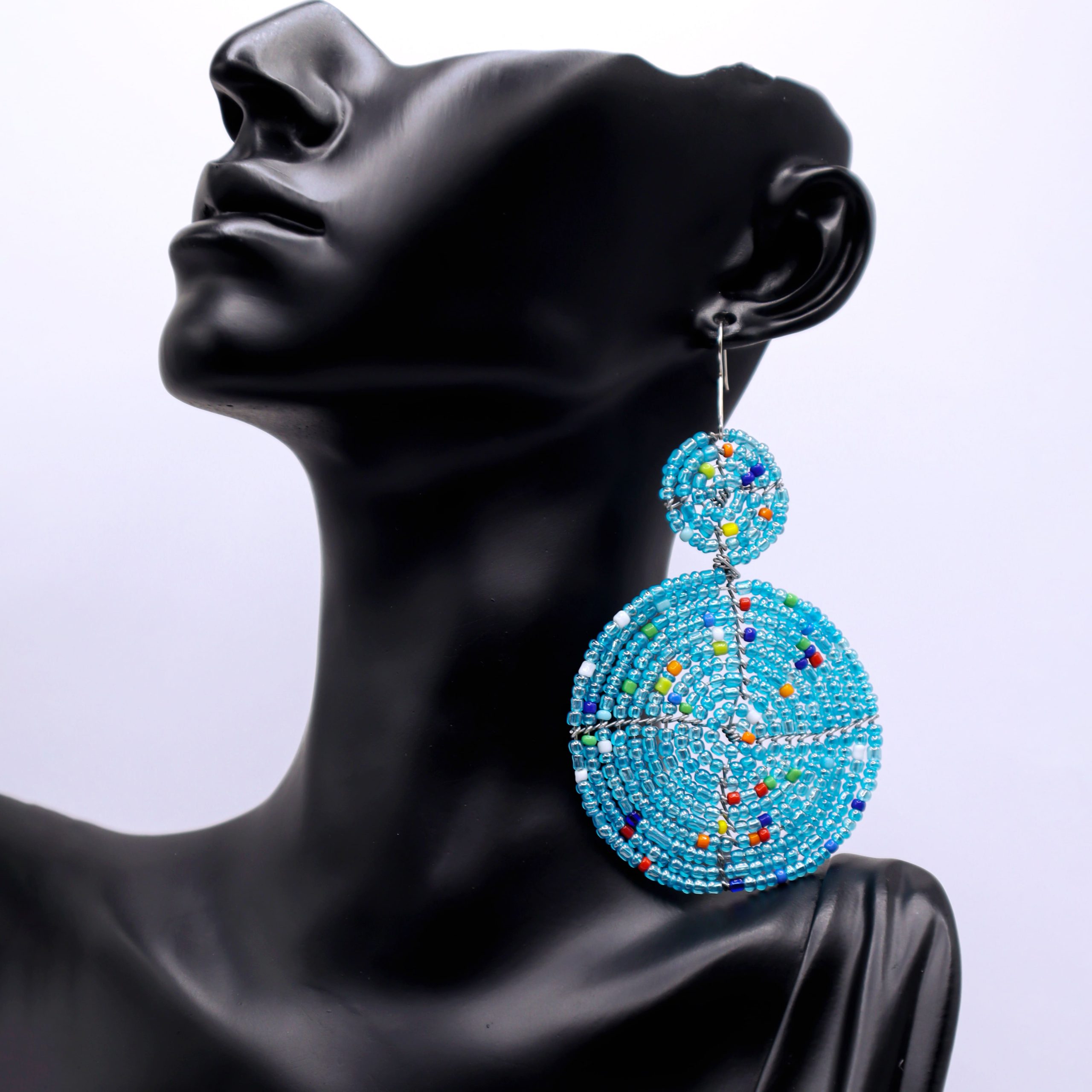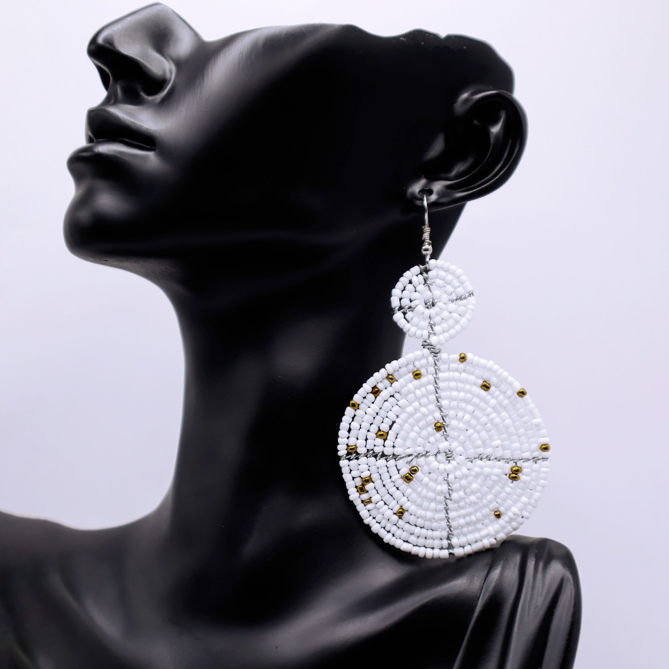 One of a kind African inspired earrings made of recycled cow bones decorated with Zebra skin animal print drawing.